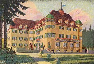 Die Landestaubstummenanstalt musste in weit entfernten Ort weiterziehen: Herzögliches Schloss in Tegernsee. Die Betrieb der Landestaubstummenanstalt begann wieder.