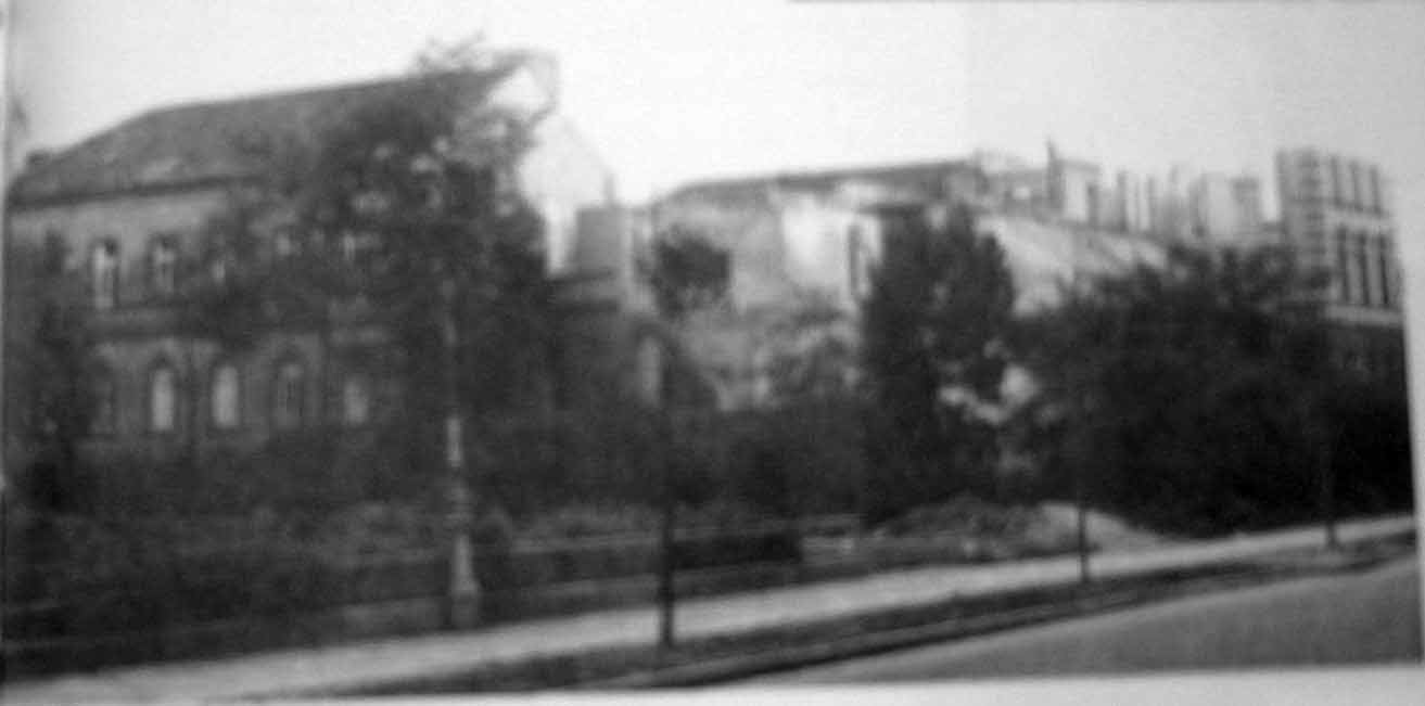 Die Frankenthaler Kreisgehörlosenschule mit Heim (Mahlastrasse) in der ehemaligen bayerischen Pfalz war durch Bombenangriff total vernichtet,die Seitenflügel dagegen wenig beschädigt.