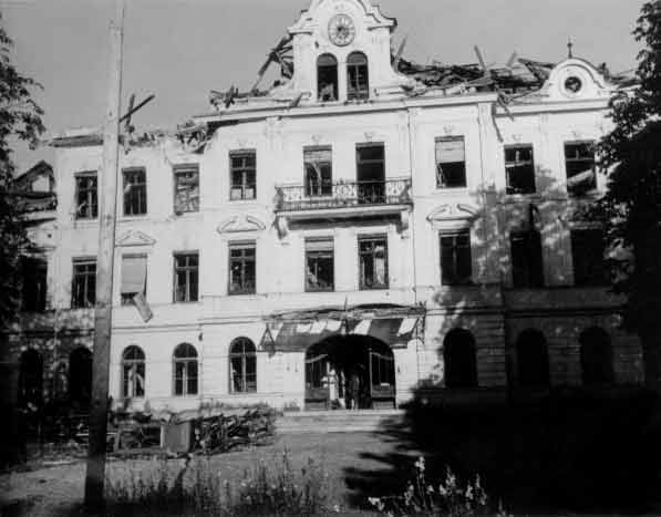 Ein Jahr später wurde die Kurklinik durch Bombenangriff beschädigt. Sie wurde durch Notdächer ersetzt und dann jahrelang als Ruine mit verwachsenem Urwald unbekümmert gelassen.
